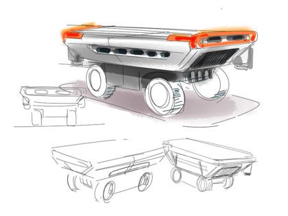 C’est à ce stade que sont validés la silhouette et les grands éléments identitaires qui communiqueront les points clés de la technologie.
