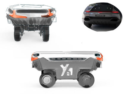Cette phase s’appuie sur des échanges réguliers avec l’équipe Yona pour affiner les propositions et intégrer les contraintes : implantation des capteurs, volumes CAO du châssis, accessibilité… Nous imaginons également un premier langage lumineux et définissons des principes de carénage.