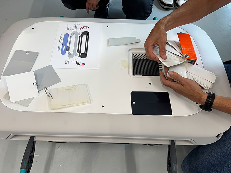 Chaque choix est validé en lien avec l’équipe technique de Yona et le prototypiste. Ce suivi évite les écarts entre l’esthétique imaginée et le prototype fabriqué. Il permet de corriger en temps réel des contraintes mécaniques ou de montage, sans jamais perdre de vue la vision initiale.